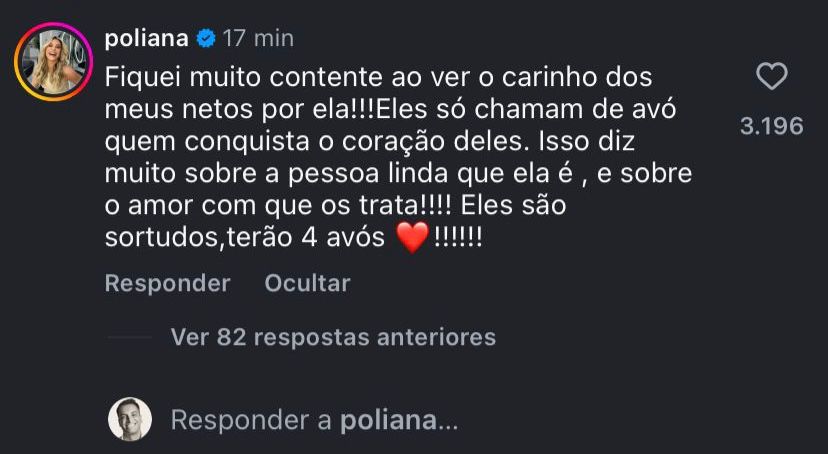 A influenciadora Poliana Rocha reagiu com leveza e carinho após o pequeno José Leonardo, filho de Virginia Fonseca e Zé Felipe, chamar Fernanda Cristina, mãe do jogador Vinícius Júnior, de “vovó”. A cena, que viralizou nas redes sociais, gerou comentários curiosos — mas foi celebrada pela esposa do cantor Leonardo. Nos comentários de uma publicação do portal LeoDias, Poliana deixou claro que não se incomodou com a situação e destacou […]
